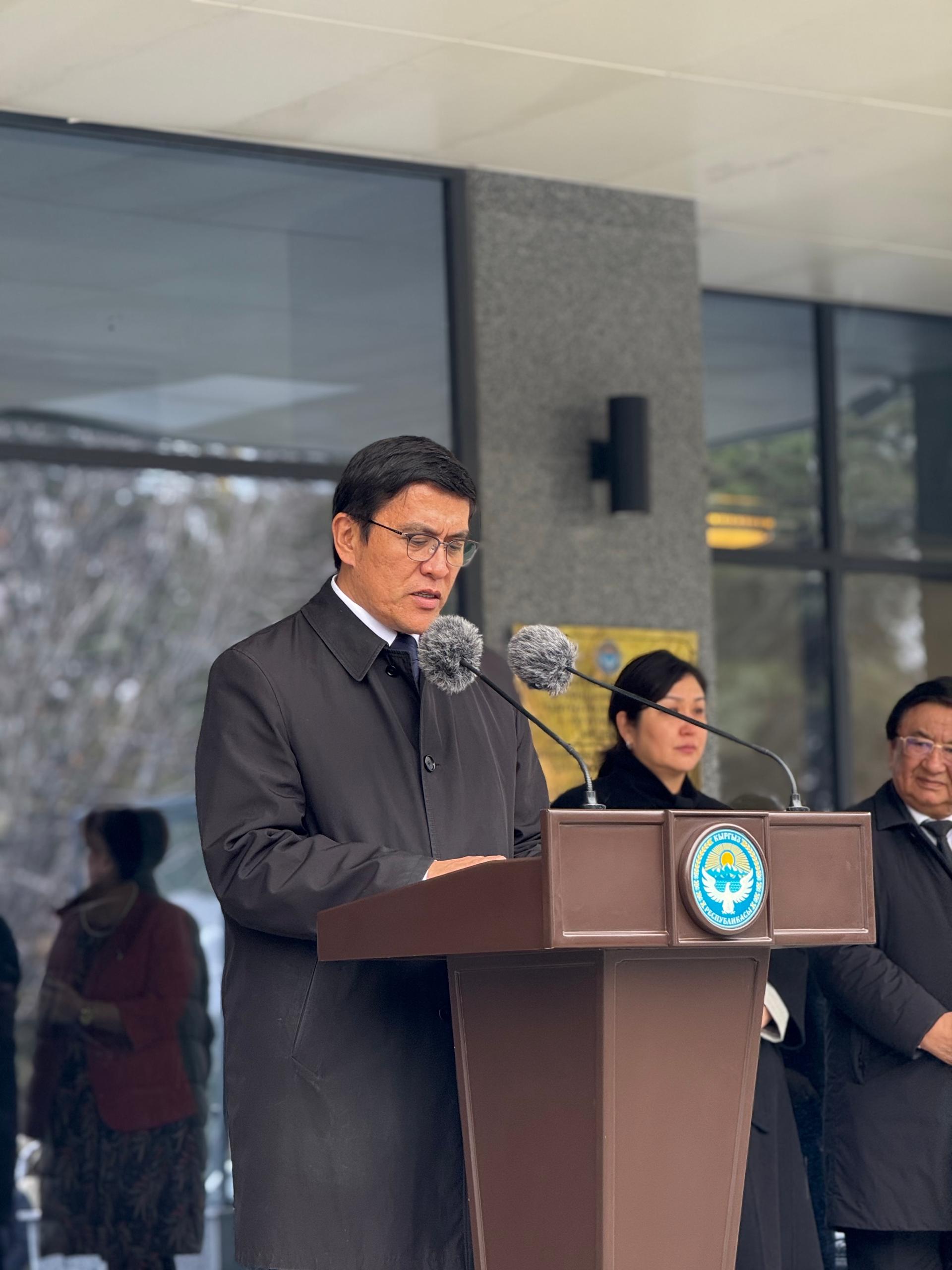 Затем Канатбек Абдрахматов выступил с речью, выразив благодарность Кабинету Министров за предоставление специальных автомобилей для проведения археологических, геологических, сейсмологических и полевых работ.
