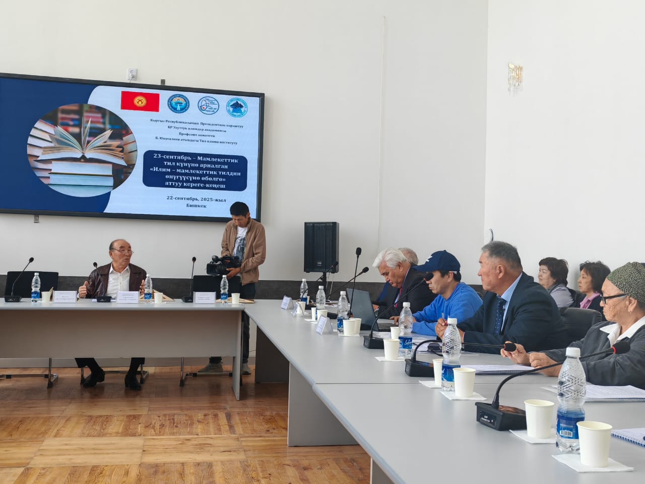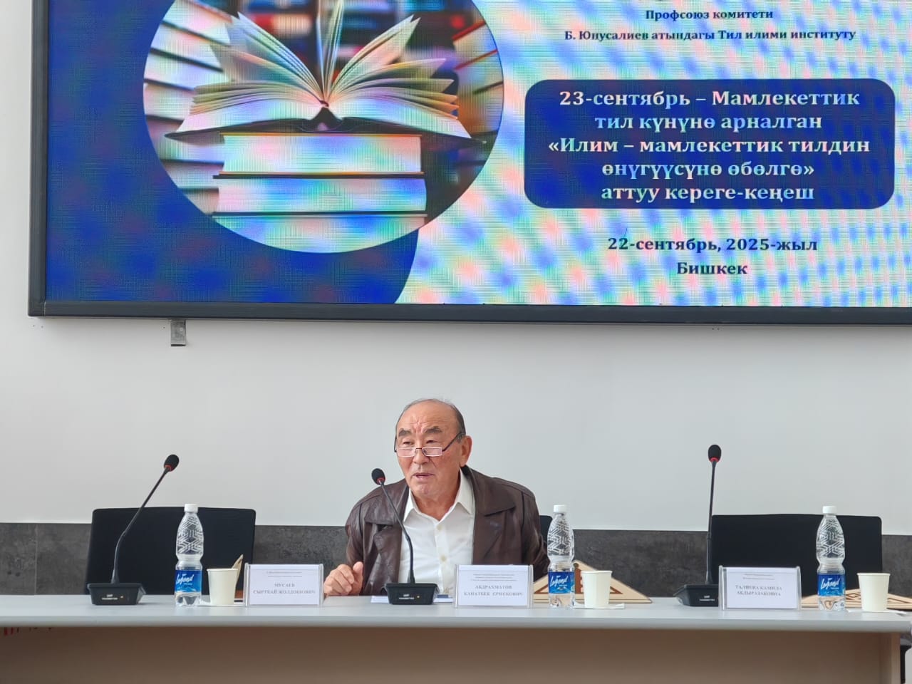 Бугүн, 23-сентябрь – мамлекеттик тил күнү. Бул майрамга байланыштуу кечээ УИАнын Б.Юнусалиев атындагы тил илими институту “Илим – мамлекеттик тилдин өнүгүүсүнө өбөлгө” аттуу кереге кеңеш өткөрдү. Негизги максат – мамлекеттик тилдин илимде колдонулушун, азыркы кездеги көйгөйлөрүн сүйлөшүп, калпыстыктарды талкууланып, сунуштар берилди.