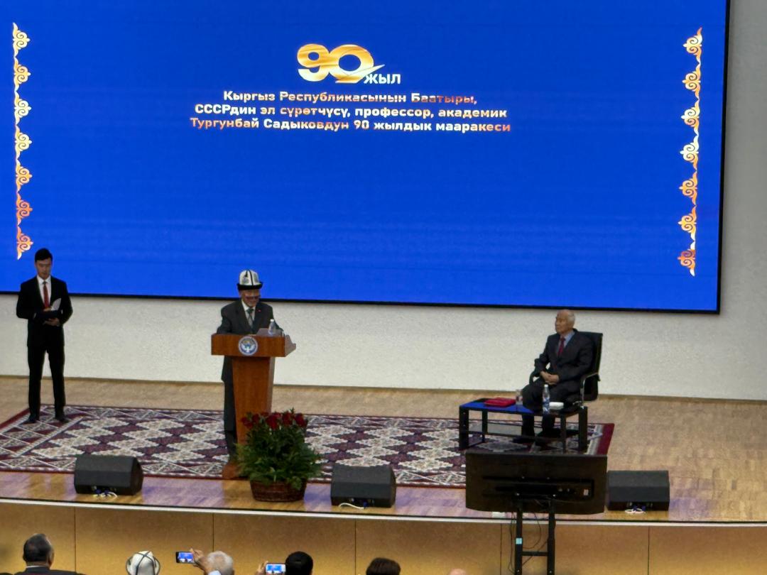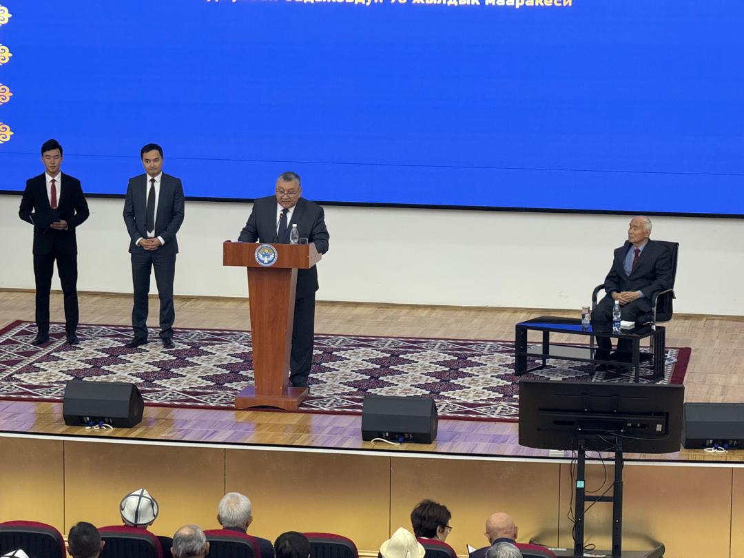 Зал ичине адамдар батпай кетти. Өзгөчө искусствону сүйгөн жаштар көп. КР мамлекеттик катчысы Марат Иманкулов чыгып сүйлөп, адегенде КР Президенти Садыр Жапаровдун куттуктоосун окуп берди. «Кыргызстандагы айкелчилик иш сиздин ысымыңызга тыгыз байланыштуу. Каныңыз менен аккан сүрөтчүлүк өнөрүңүздү талбаган канат менен күүлөп, кыргыз айкел өнөрүн дүйнөнүн төрт тарабына тааныттыңыз. Аны менен кыргыз искусствосуна эбегейсиз эмгек кылдыңыз. Манас, «Эл куту», Уркуя Салиева, Мамбет Мамакеев, Чыңгыз Айтматов сыяктуу көптөгөн кыргыздын белгилүү инсандарынын айкелдерин жасадыңыз. Сиз жасаган айкелдер дүйнөнүн ар кайсы жеринде, ЮНЕСКОнун кире беришинде да турат. Сиздин эмгектер руханий баалуулук катары сакталат.