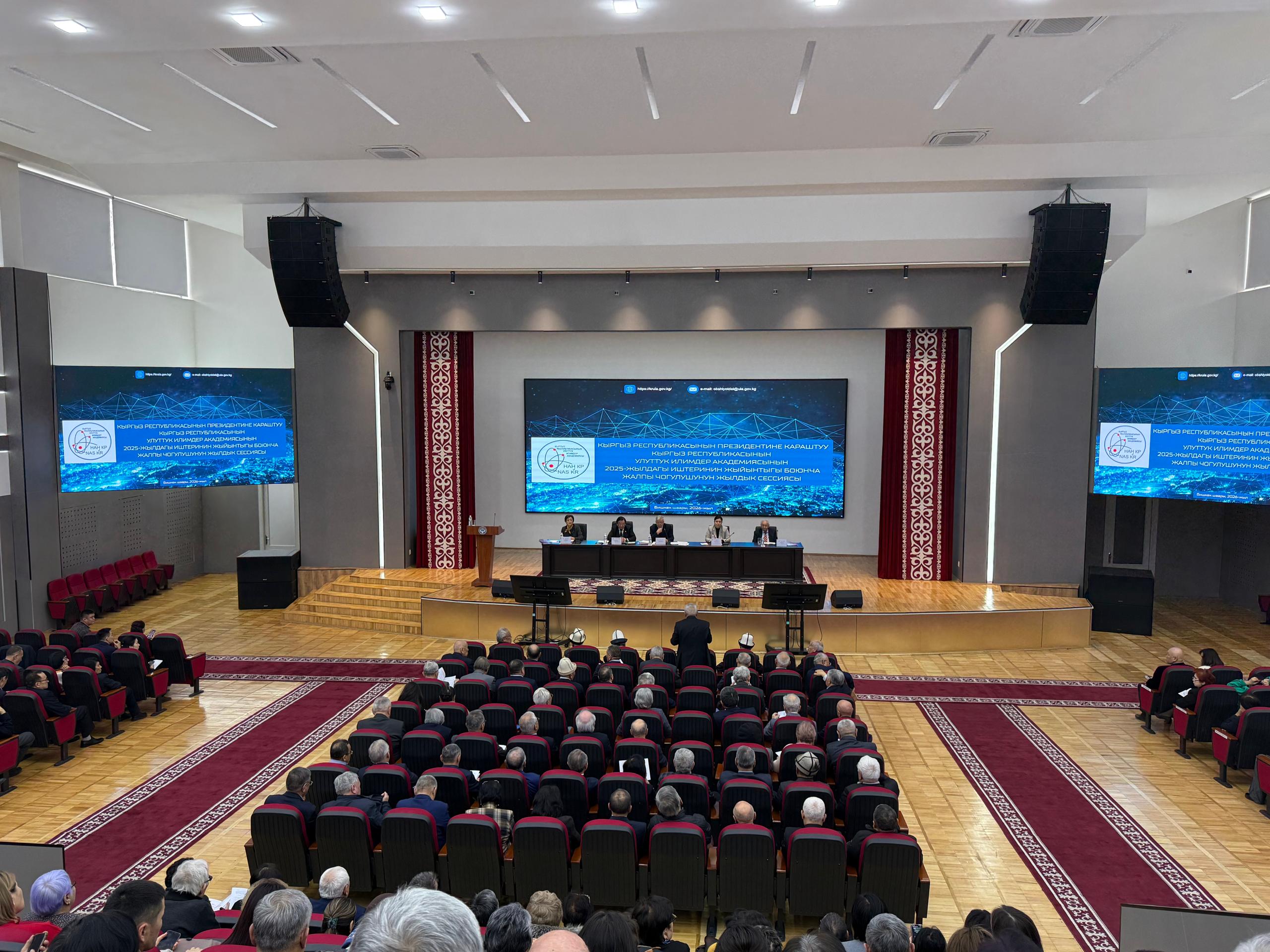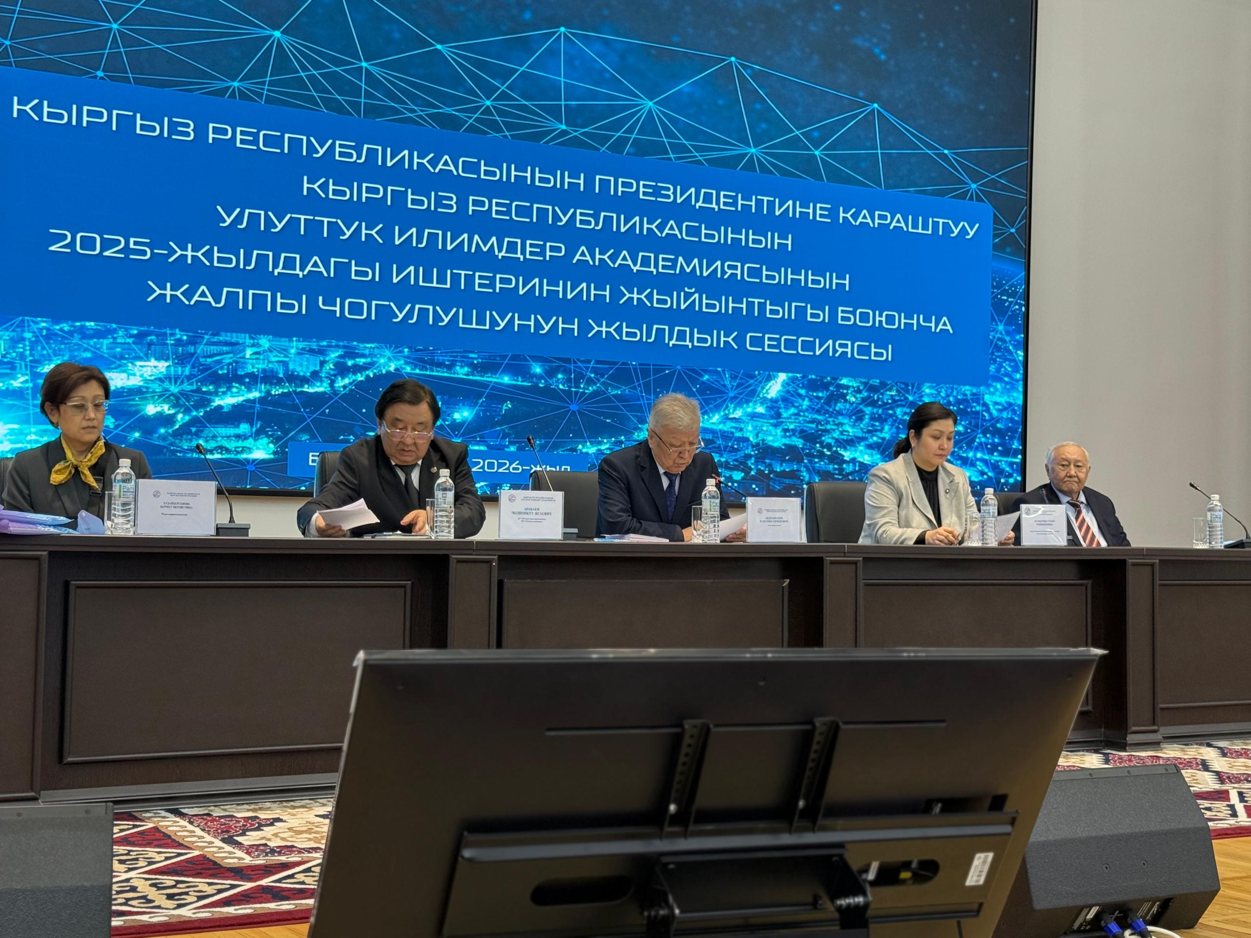 Кечээ Улуттук илимдер академиясынын жыйындар залында 2025-жылы аткарылган илимий изилдөө жана илимий уюштуруу иштеринин жыйынтыгы боюнча Жалпы жыйынынын жылдык сессиясы болду.