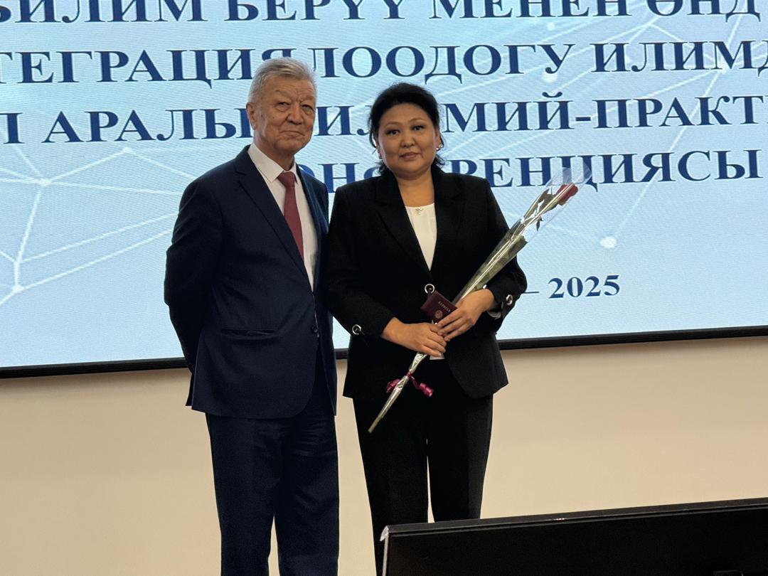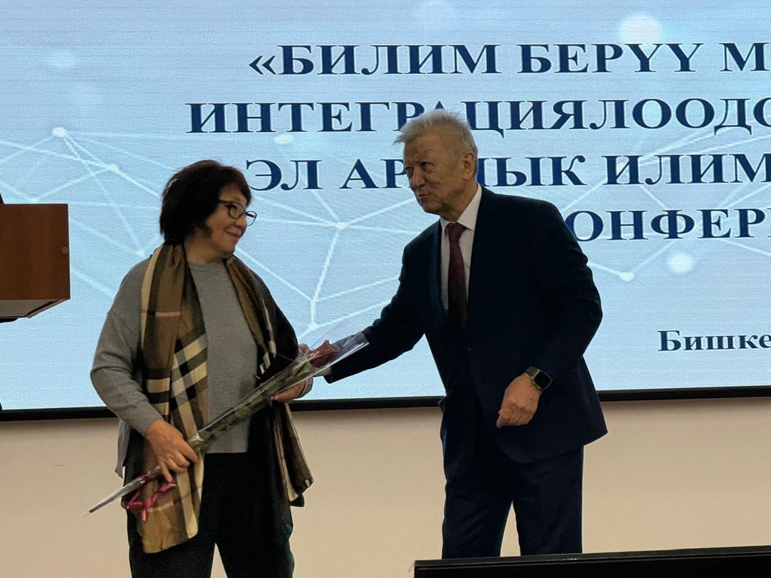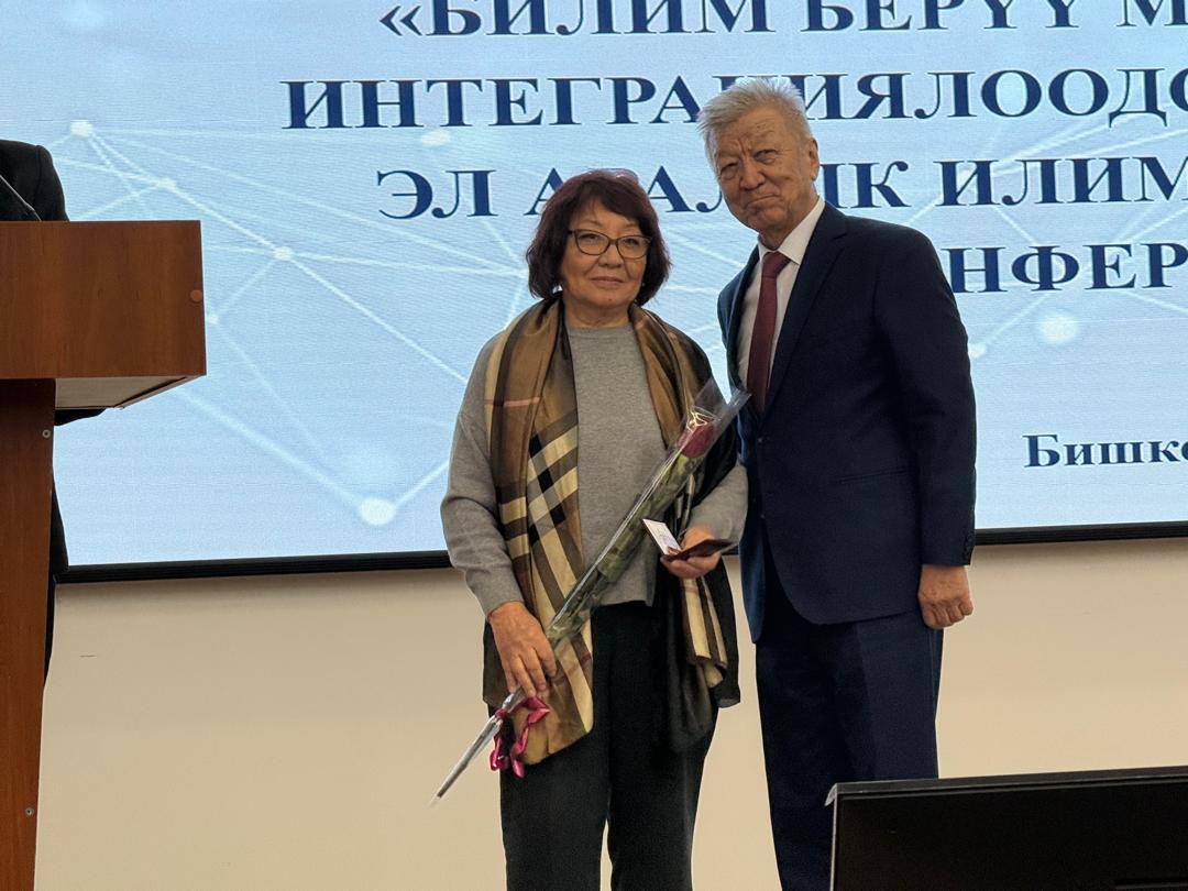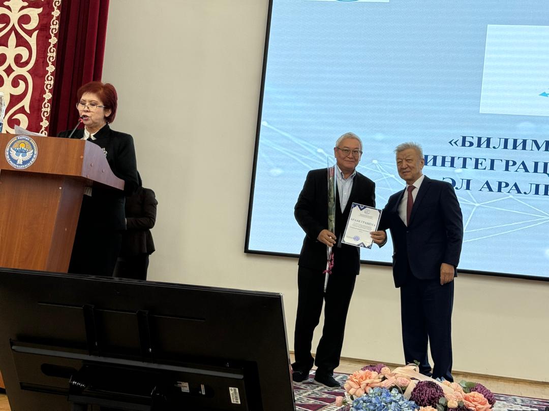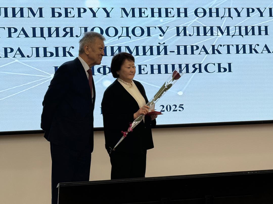 Бүгүнкү эл аралык илимий конференциянын жыйынтыгында илим күнүнө карата КР Илим, билим берүү жана инновациялар министрлиги жана КР Президентине караштуу Улуттук илимдер академиясы илимге салым кошкон кызматкерлерди, илимдин докторлорун, кандидаттарын, мыкты кызматкерлерди сыйлыктар менен сыйлады.