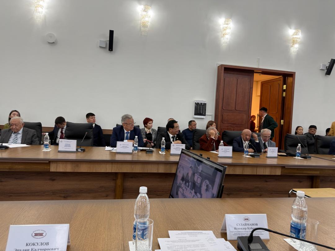 Сегодня в Национальной академии наук при Президенте КР состоялось выездное заседание Жогорку Кенеша. В нем приняли участие депутаты Жогорку Кенеша, председатель комитета по науке, образованию, инновационному развитию и информационным технологиям, культуре, спорту и делам молодежи Токтобүбү Ашымбаева, её заместители Салтанат Аманова, Гүлшаркан Култаева, Болот Сагынаев, члены комитета Сеид Атамбаев, Эрулан Көкүлов, заместитель министра финансов КР, директор Центрального казначейства Үмүтжан Аманбаев, а также академики и директора институтов.